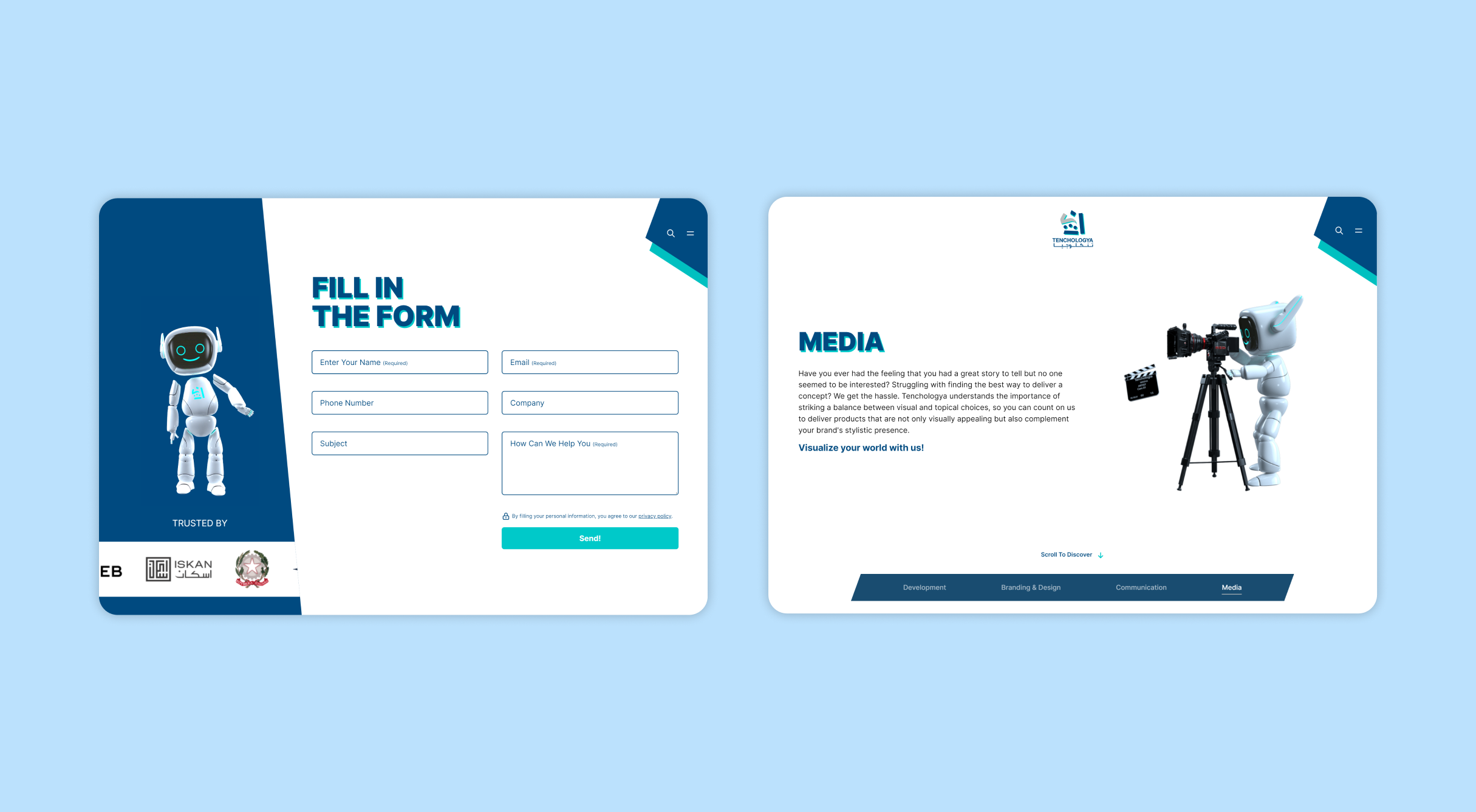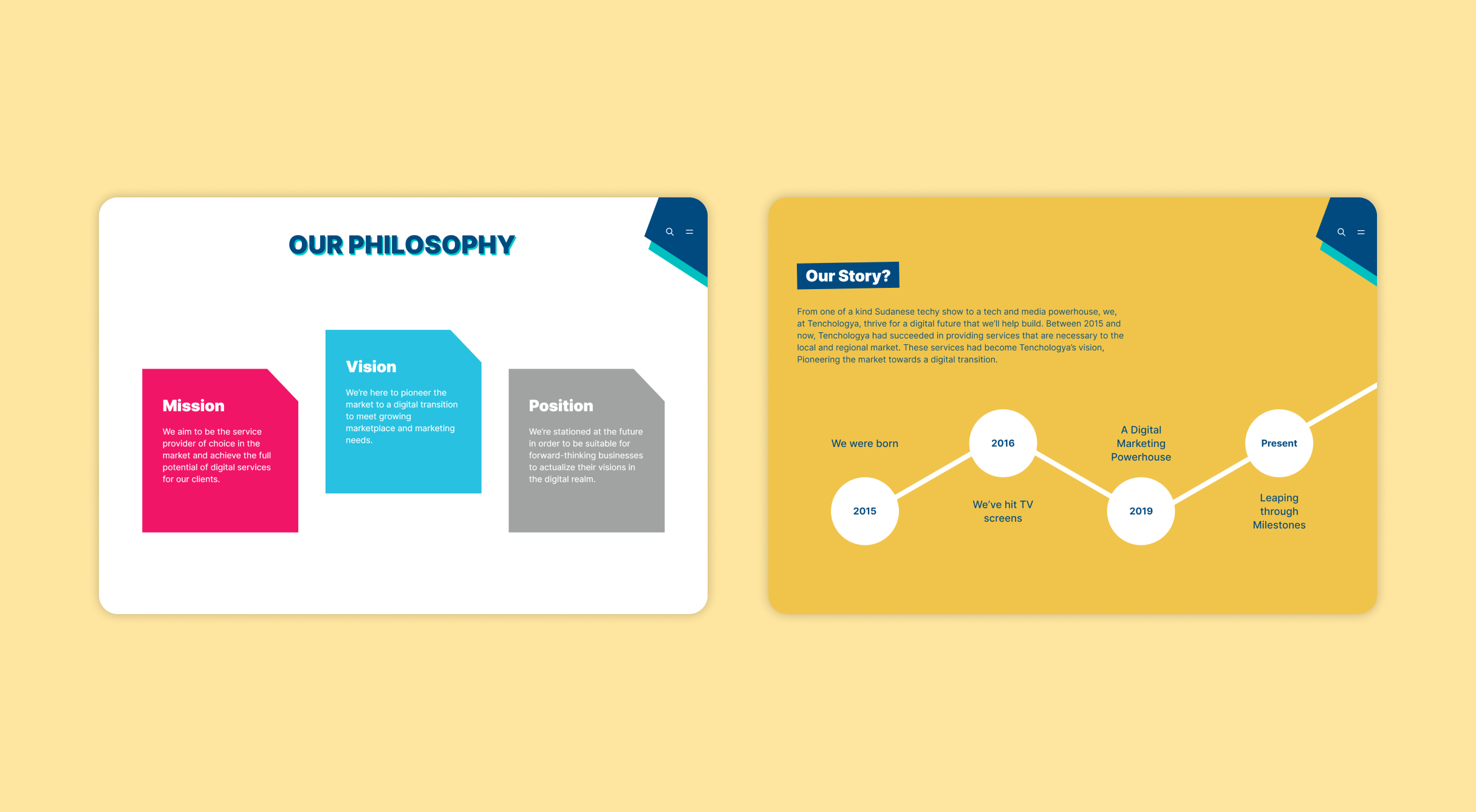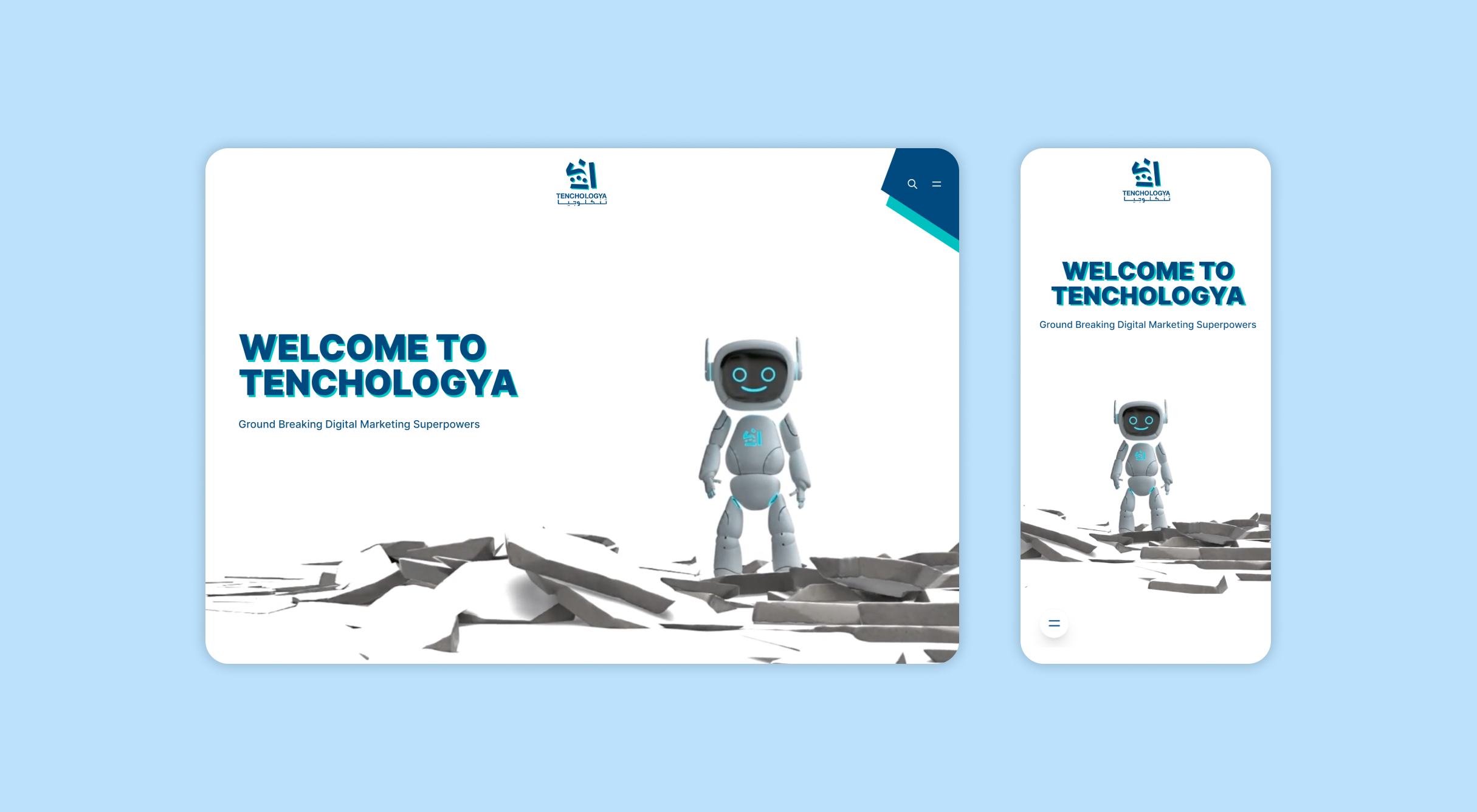 Implementing Tenchologya's new brand identity into an updated website design.